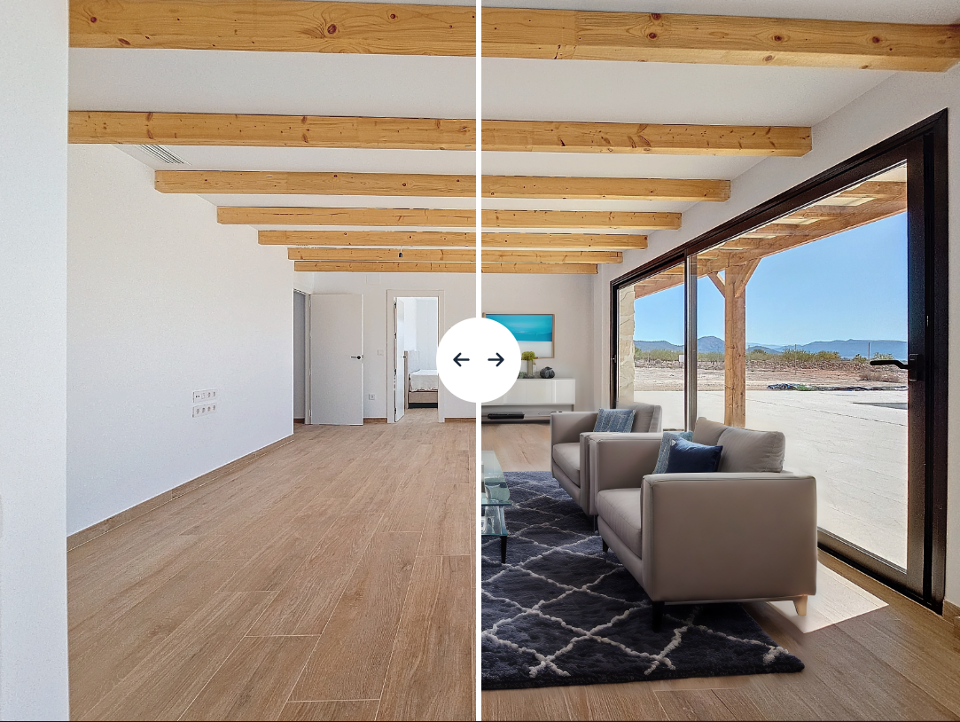Een kamer wordt met behulp van AI gevuld met meubels of de bestaande meubels worden vervangen. Kies ervoor om de mogelijkheden te laten zien van een kamer die slaapkamer, woonkamer of kantoor wordt in diverse stijlen zoals modern, industrieel, scandinavisch. Door (re)styling te gebruiken, krijgen potentiële kopers een beeld van wat ze met de woning kunnen doen en hoe ze deze kunnen omtoveren tot hun thuis. Voorbeelden staan op de pagina 'portfolio'.